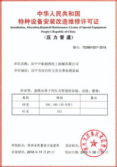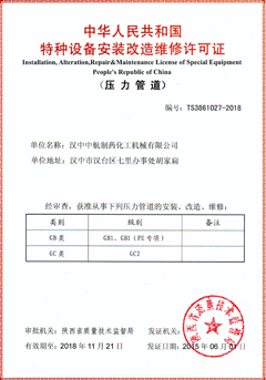 特種設(shè)備安裝改造維修許可證(壓力管道)