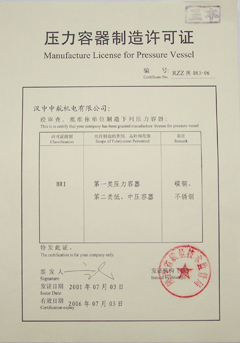 特種設(shè)備制造許可證(壓力容器)